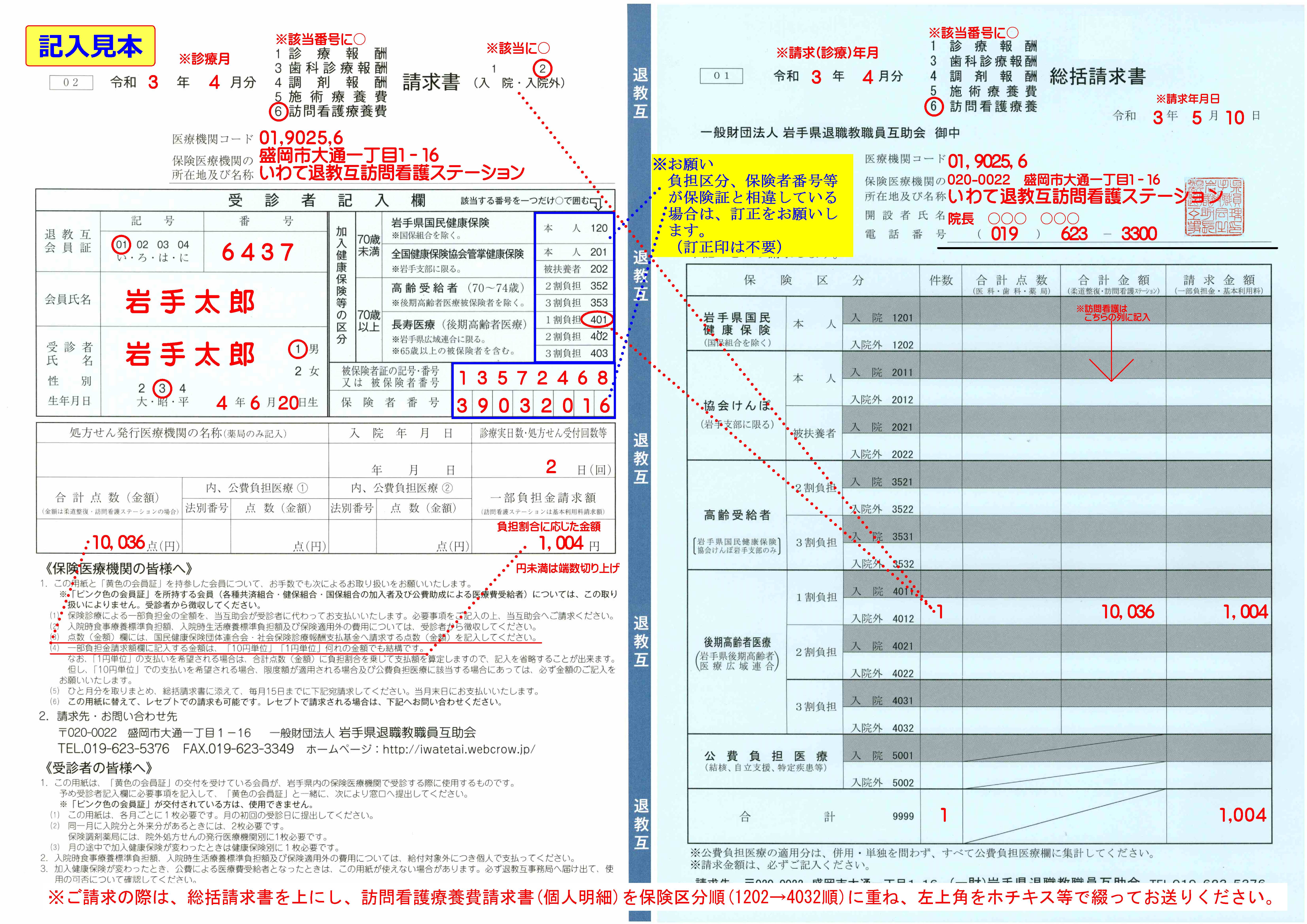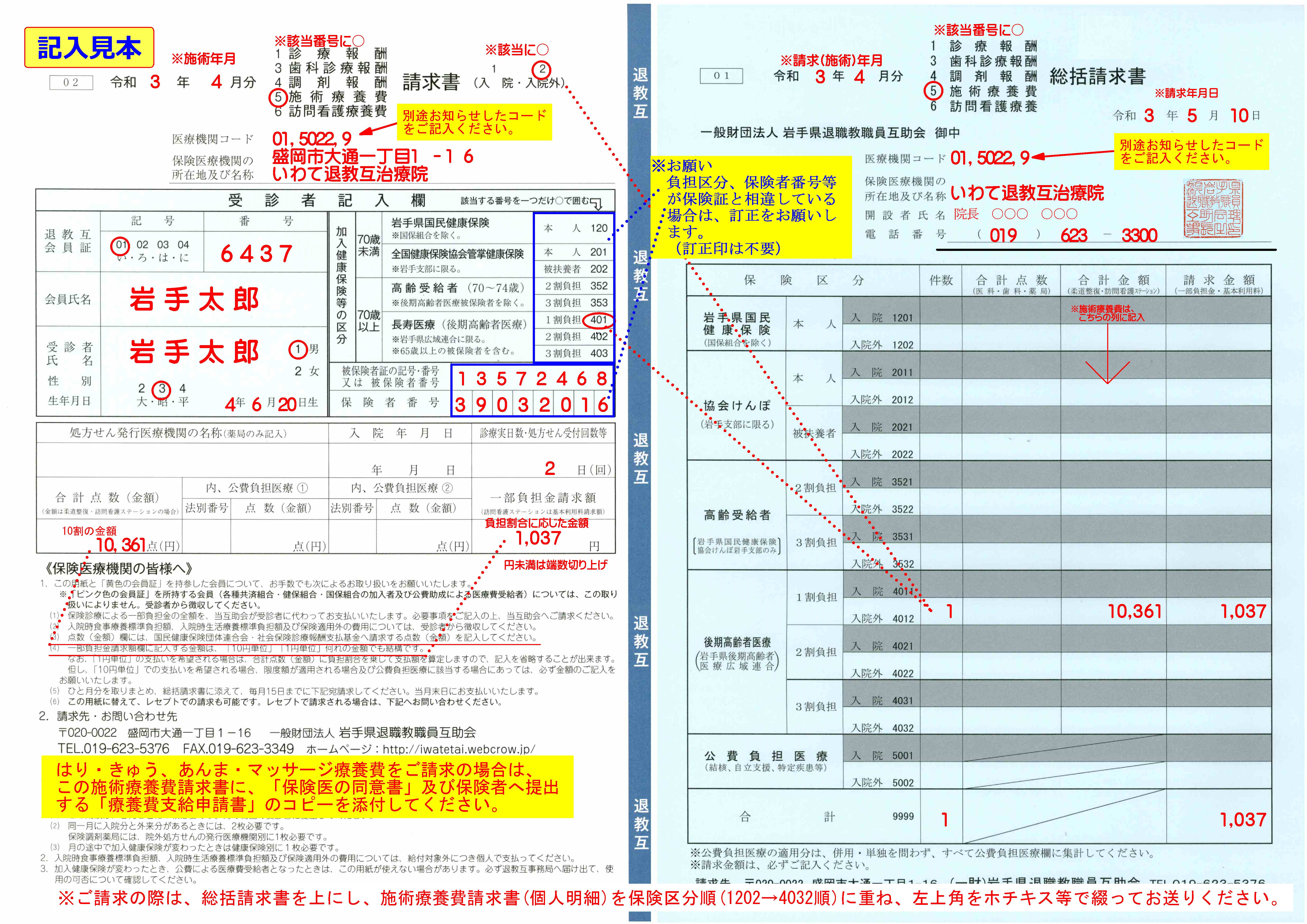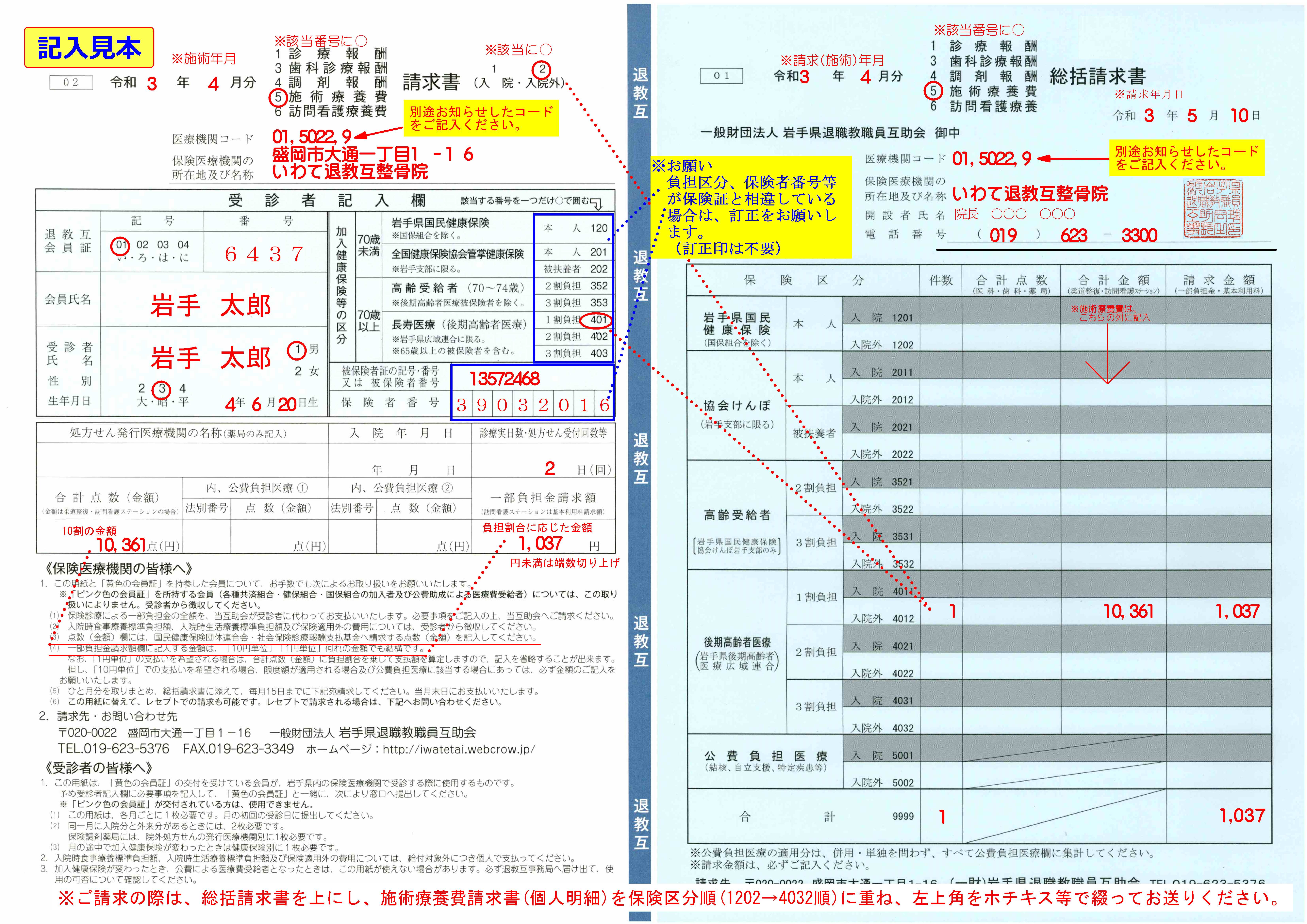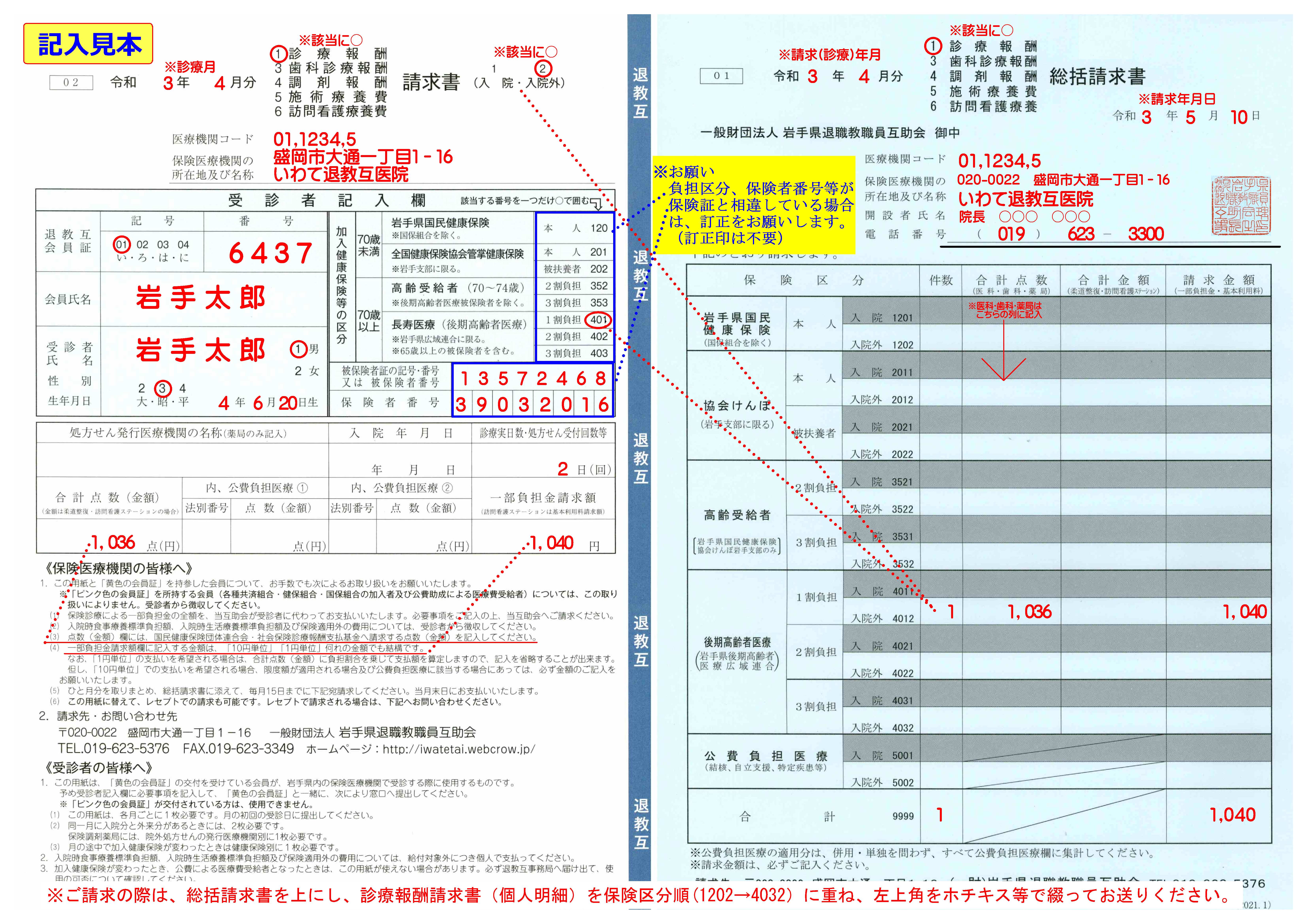 ・「診療報酬請求書」及び「診療報酬総括請求書」に必要事項を記入の上、御請求下さい。