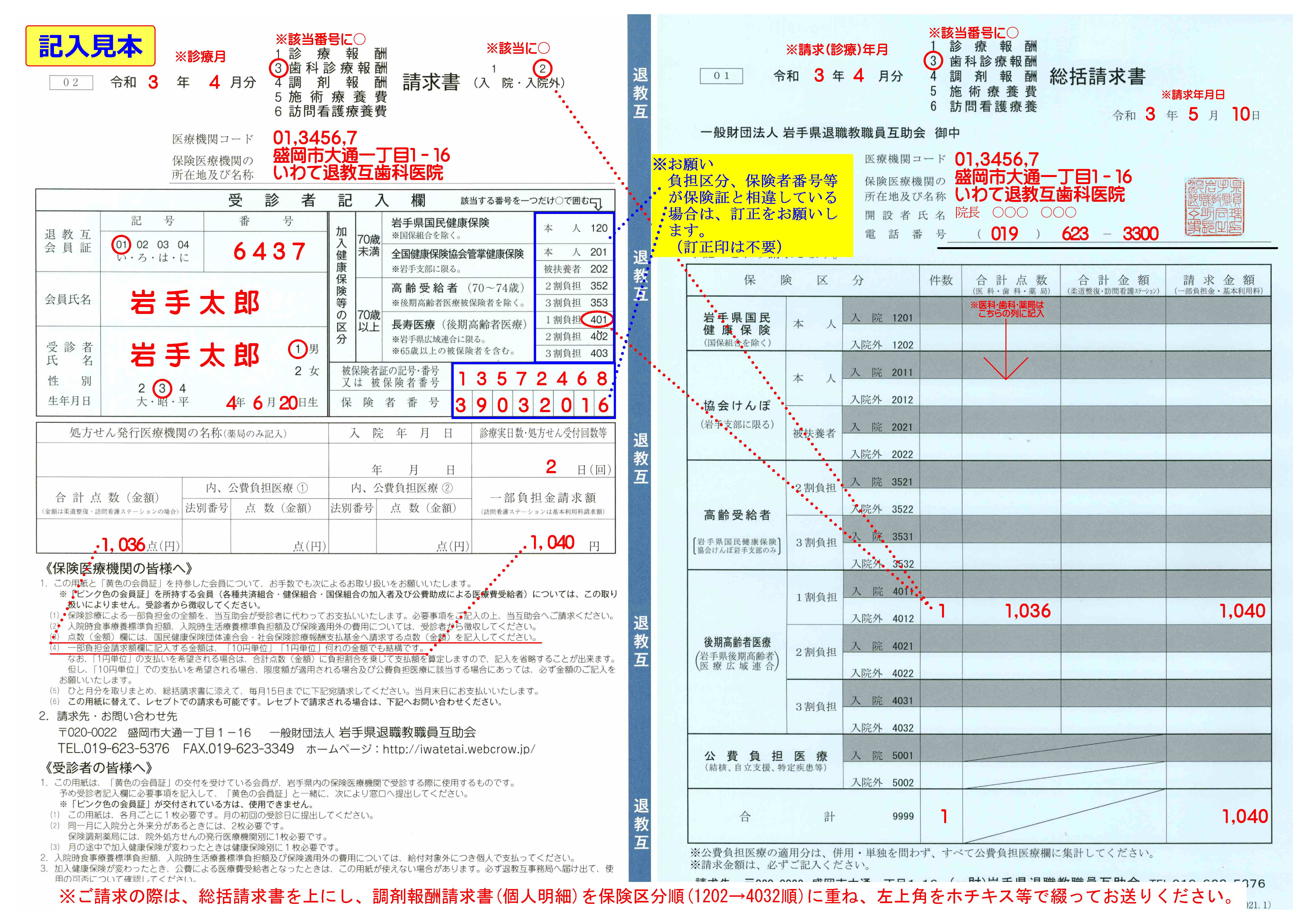 又、「会員証」及び「診療報酬請求書」を持参しなかった場合も、窓口徴収をお願いします。