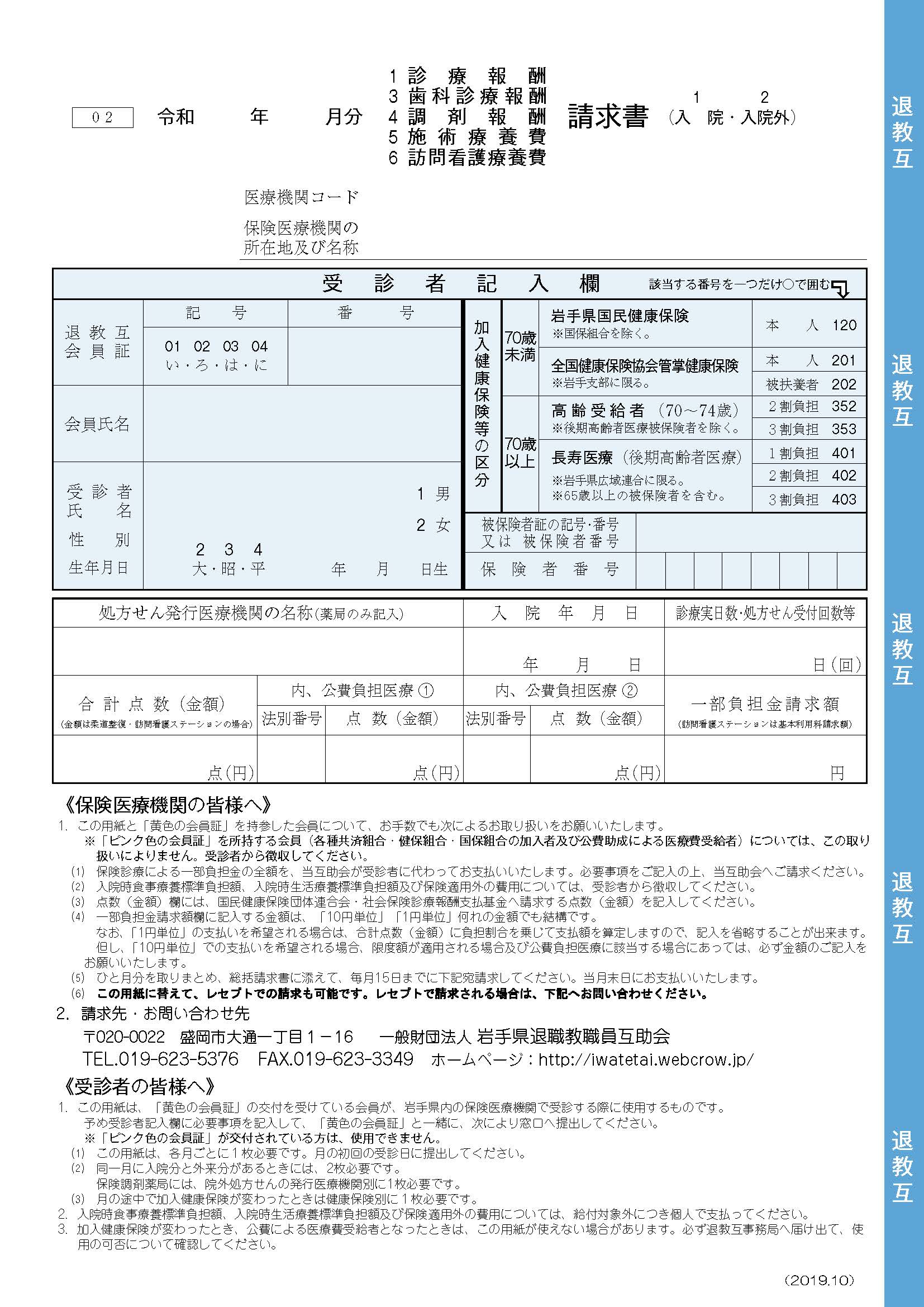 ・当互助会の「診療報酬請求書」に依らずレセプトでの請求も対応できますのでその際はご連絡ください。